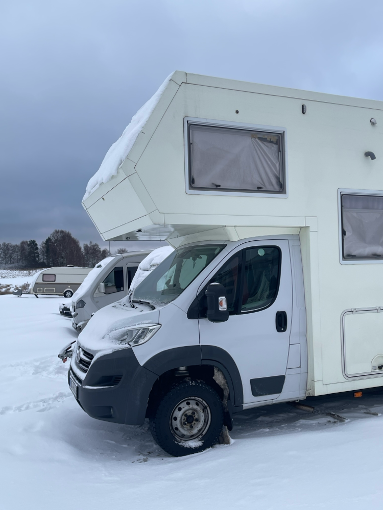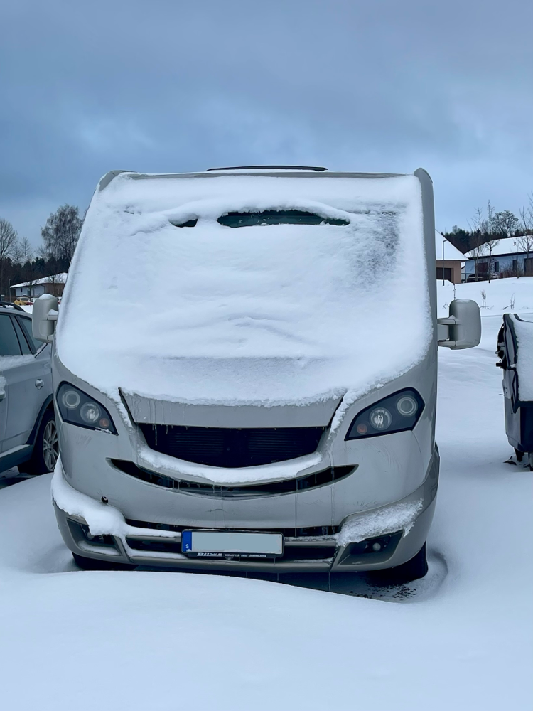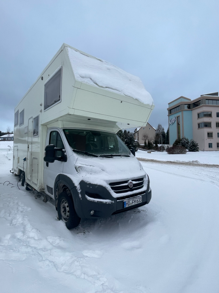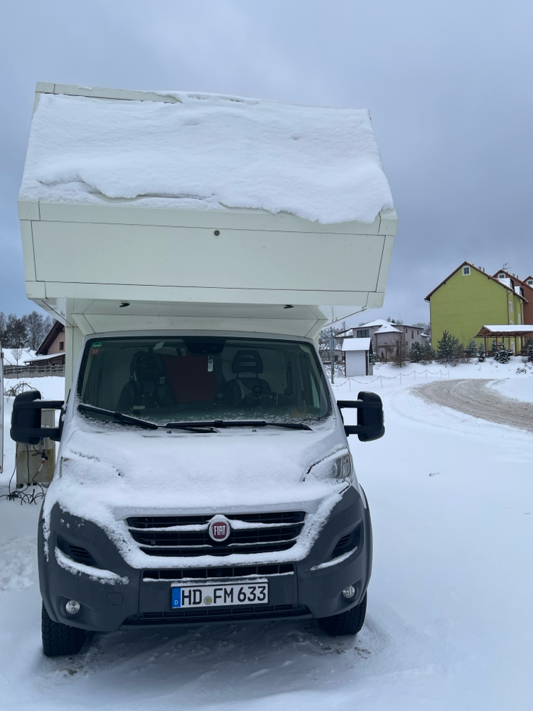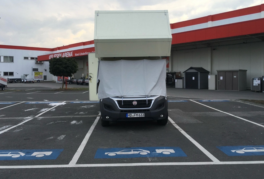 Der Alkoven eignet sich dazu sehr gut. Ringsherum an der Unterseite des Alkoven kleine Ringösen einschrauben oder ankleben. Eine Plane für die Frontscheibe/ Motorhaube. Und eine Plane für die