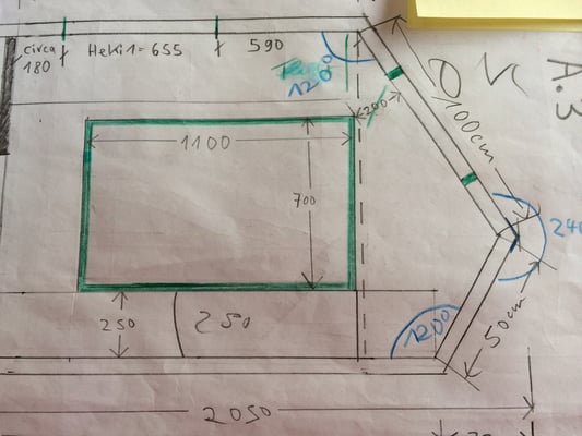 [•Alkoven-Boden-Fläche 3,7022 m2 Quadratmeter] x Höhe 133cm = [•Alkoven-Volumen 4,923926 Kubikmeter