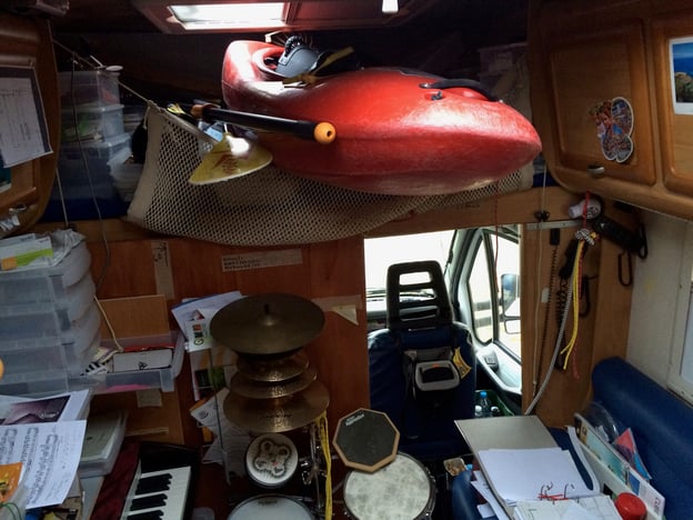 Wird der Alkoven generell nicht als Schlafplatz benötigt, eignet sich der Alkoven als riesengroßer Lagerplatz. In der Ausgangslage wurde bei Bedarf ein Kajak im Alkoven gelagert und