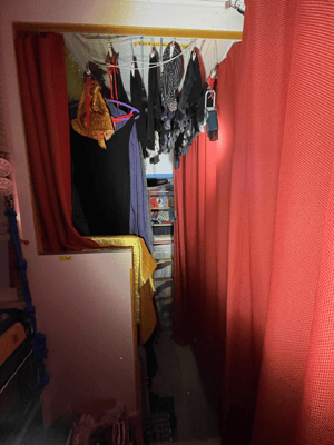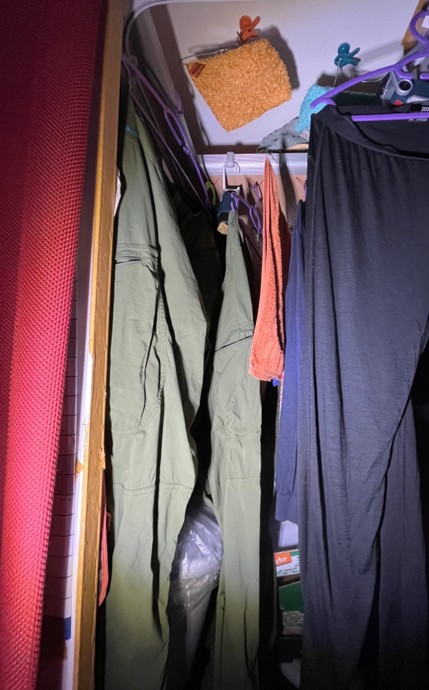 Da hängen auch mal Fahrradhelme und andere Utensilien des täglichen Bedarfs, sind immer griffbereit und trotzdem aus dem Weg. Genaugenommen sind sie über dem Weg.