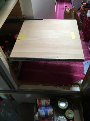 Die 50cm Breite ergibt sich aus der Breite des Kühlschrankes.