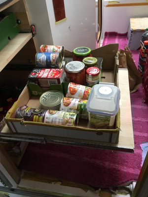 Durch die drei wasserdicht geschlossenen PU-Kästen, ist die an der Wand dahinter befindliche Stromverteilung vor der Nässe von eventuell auslaufenden Flaschen und Konserven geschützt.